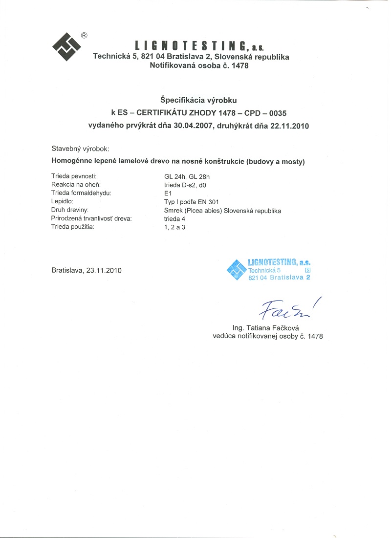 Lepené lamelové nosníky sú vyrábané v dvoch typových kvalitách:Slavkov